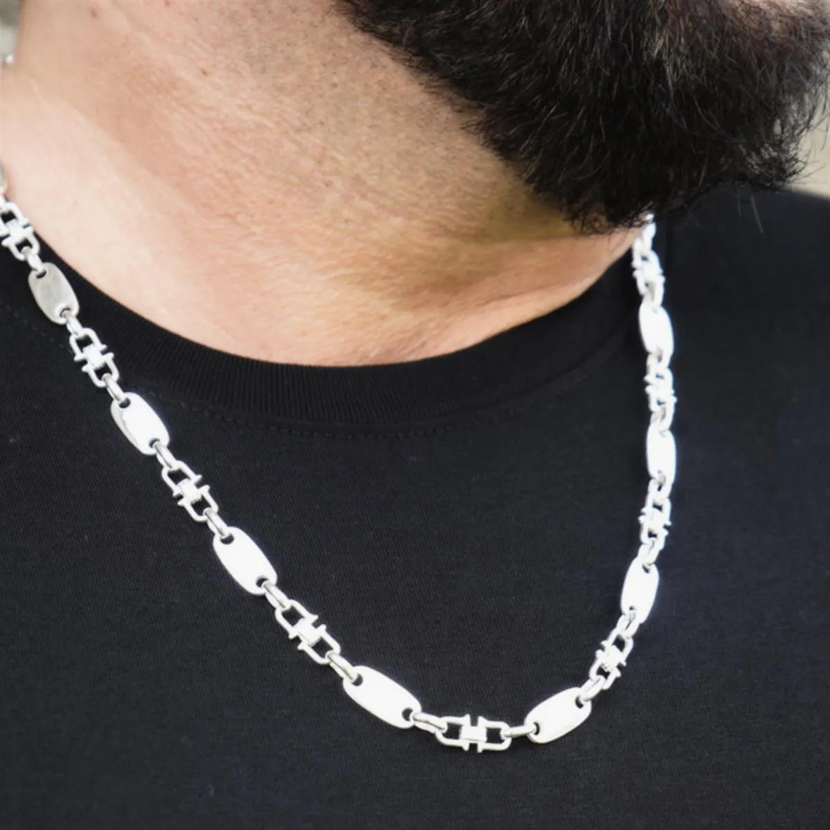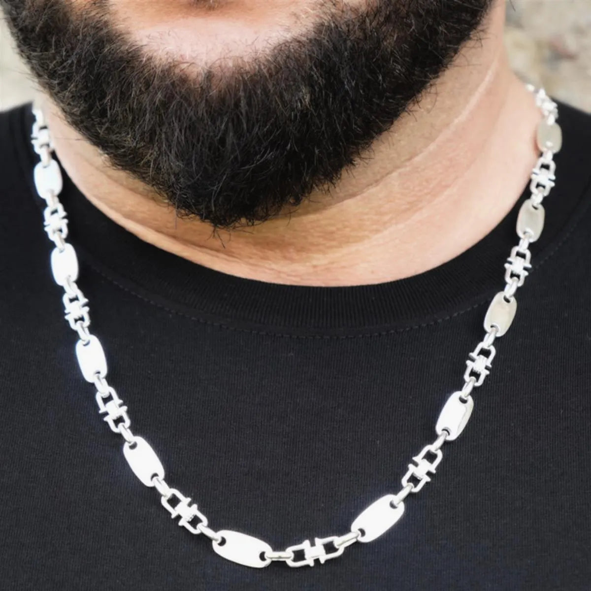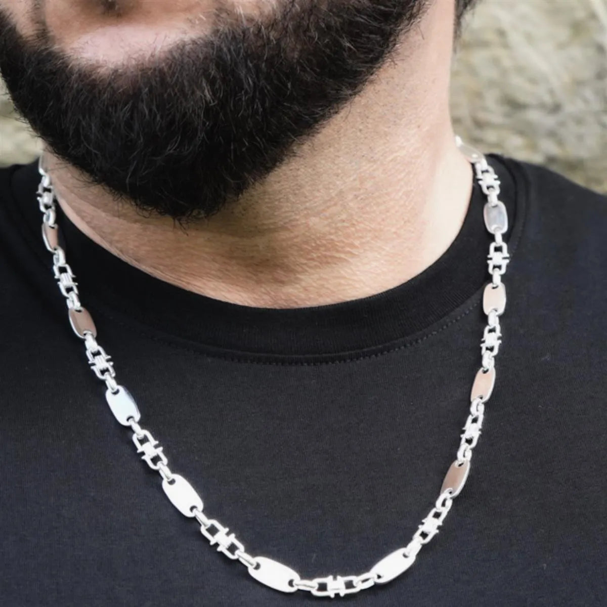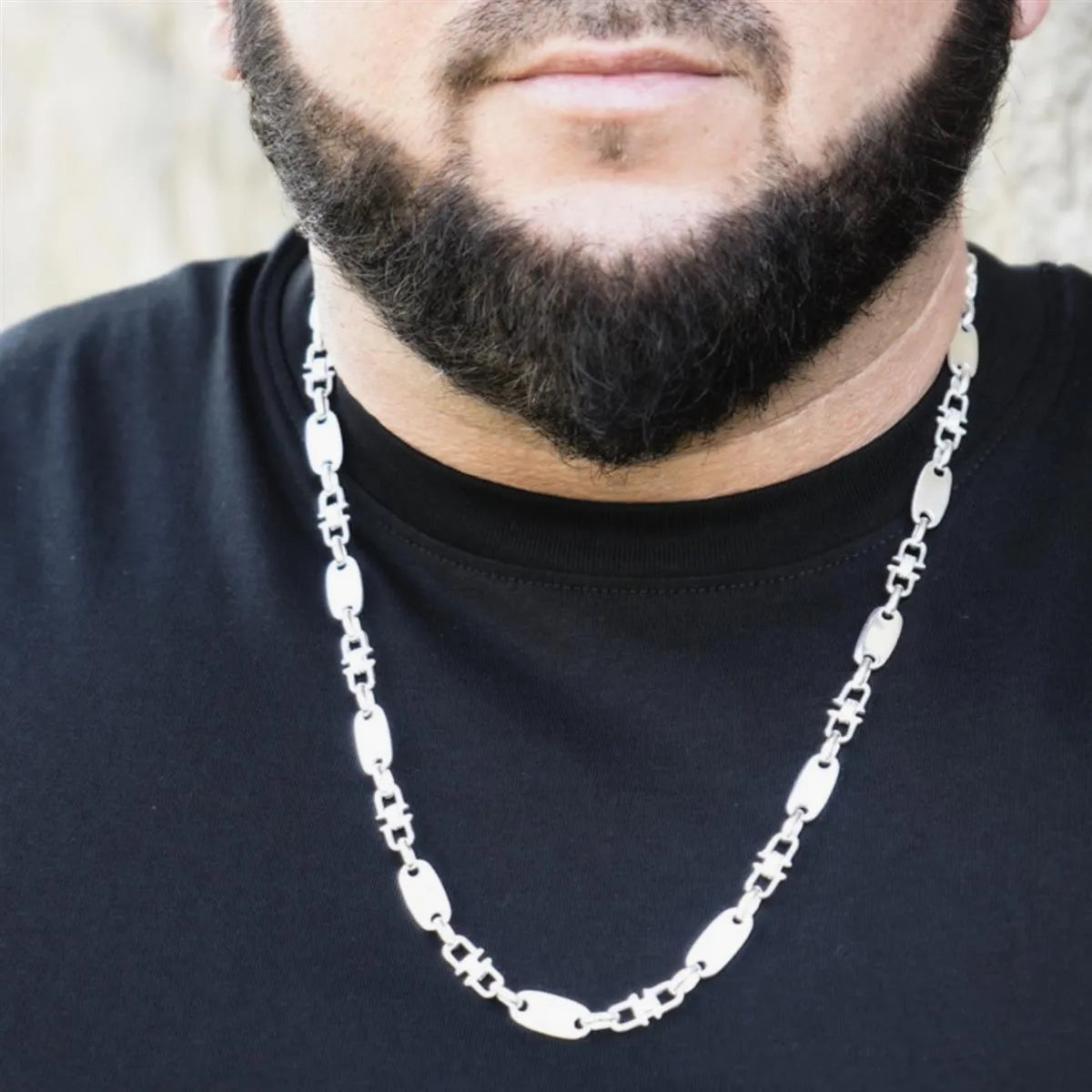 Diese Herrenkette vereint schlichte Ausdruckskraft mit moderner Stärke. Stellen Sie sich vor, Sie werfen einen Blick in den Spiegel – sie zieht keine Aufmerksamkeit auf sich, und doch verändert sie Ihren gesamten Auftritt.